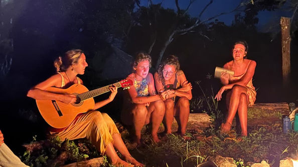 Espaço de experiencia e de aprendizagem: a presença da natureza, o cacau, as praticas compartilhadas, as medicinas da floresta, a vida coletiva, a alimentação e nosso acolhimento amoroso favorecem momentos de transformação e cura.